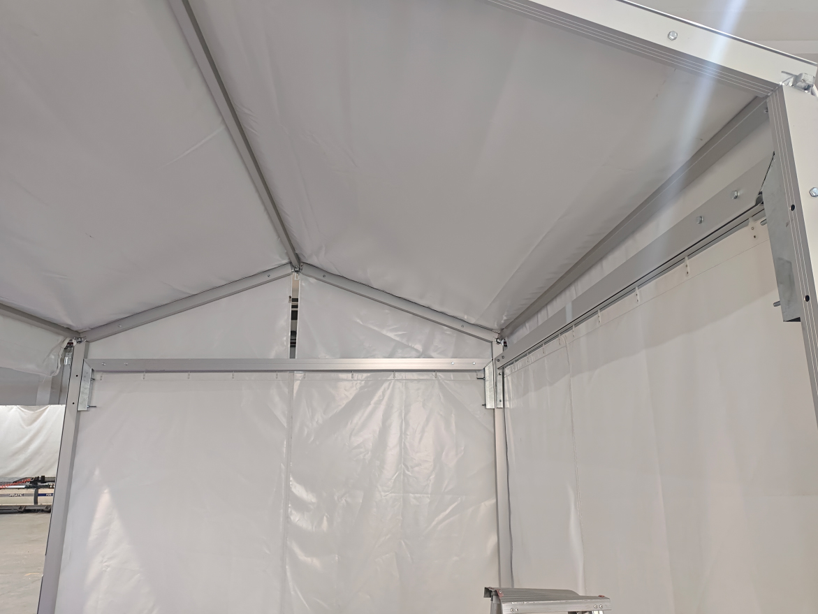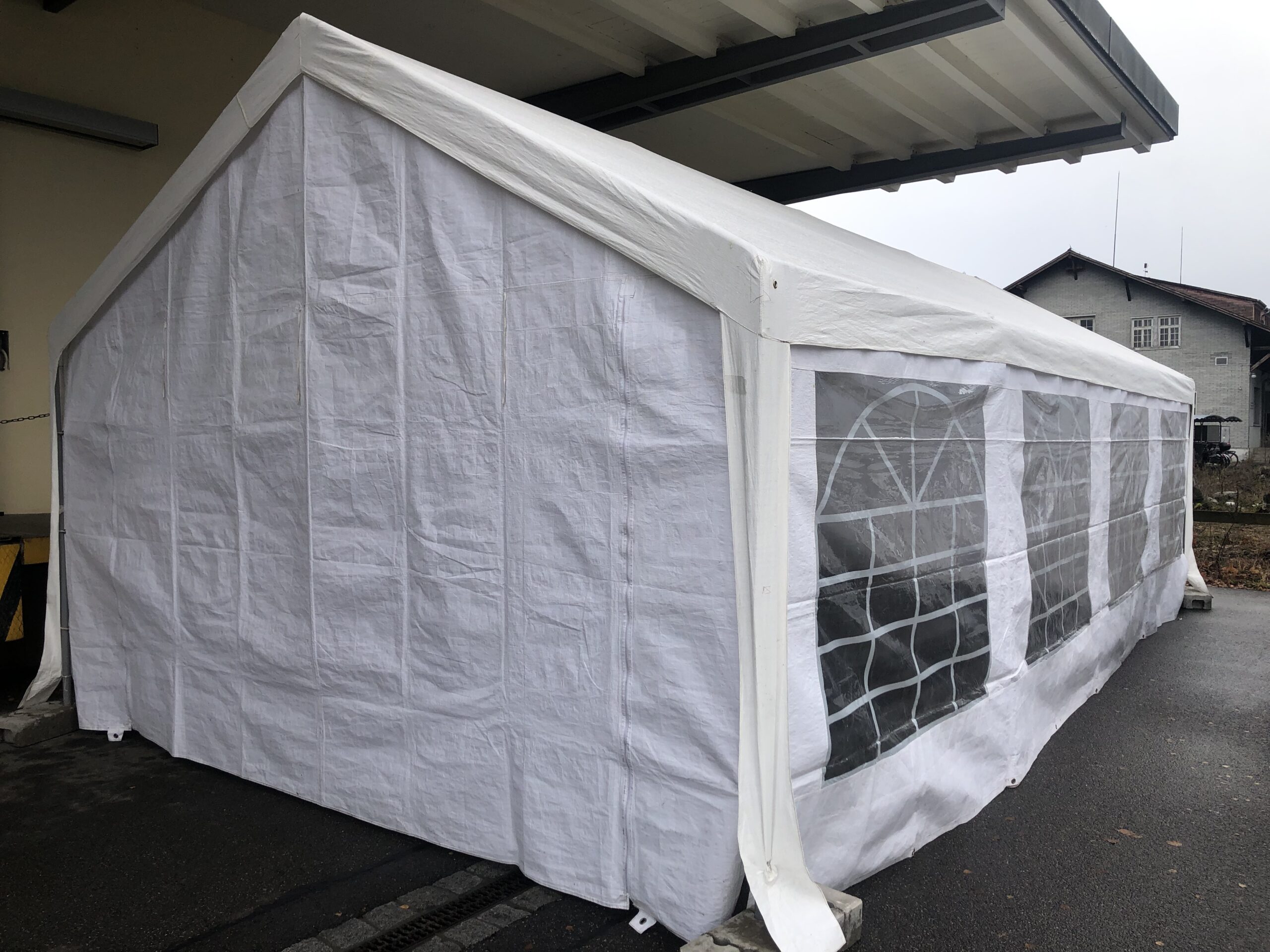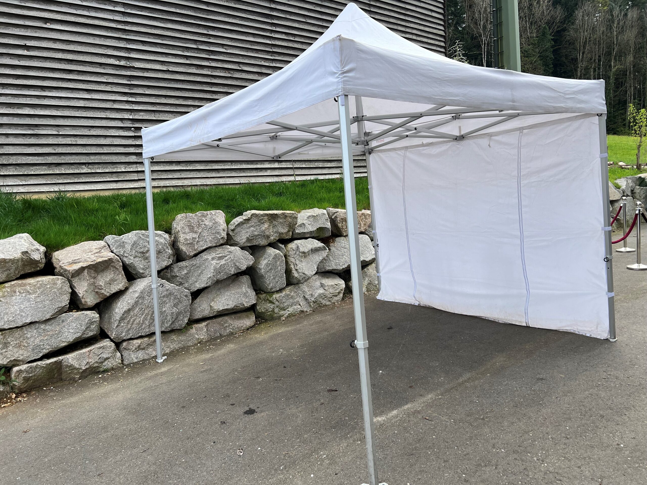 5 x 5 m, weiss, Seitenhöhe verstellbar, mit oder ohne Seitenblachen