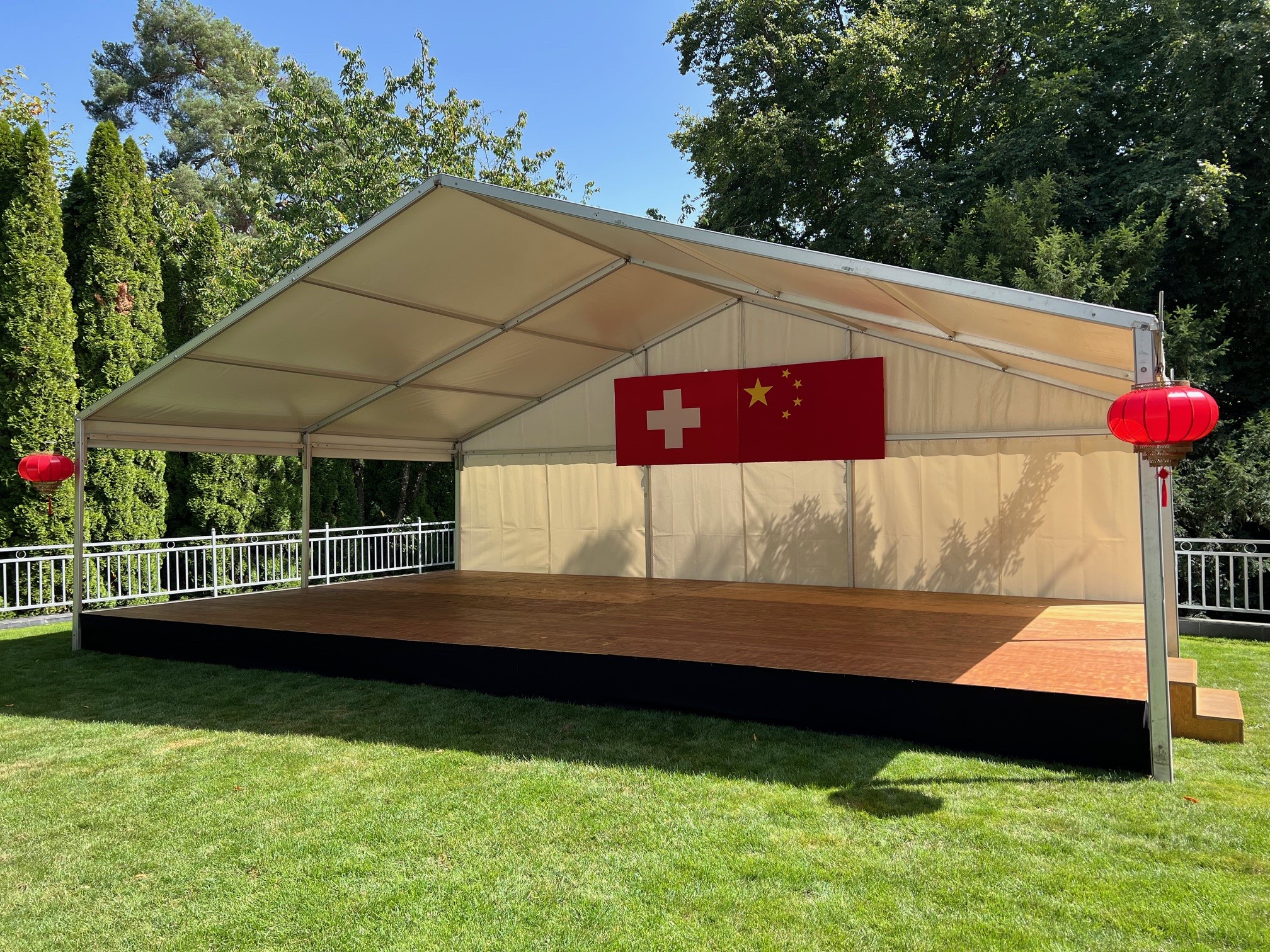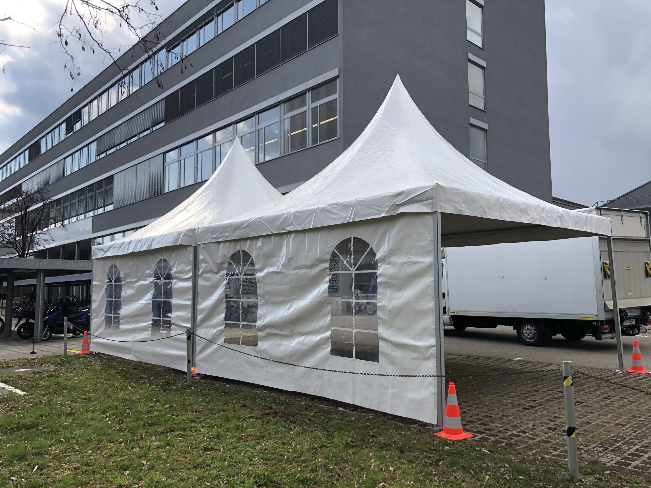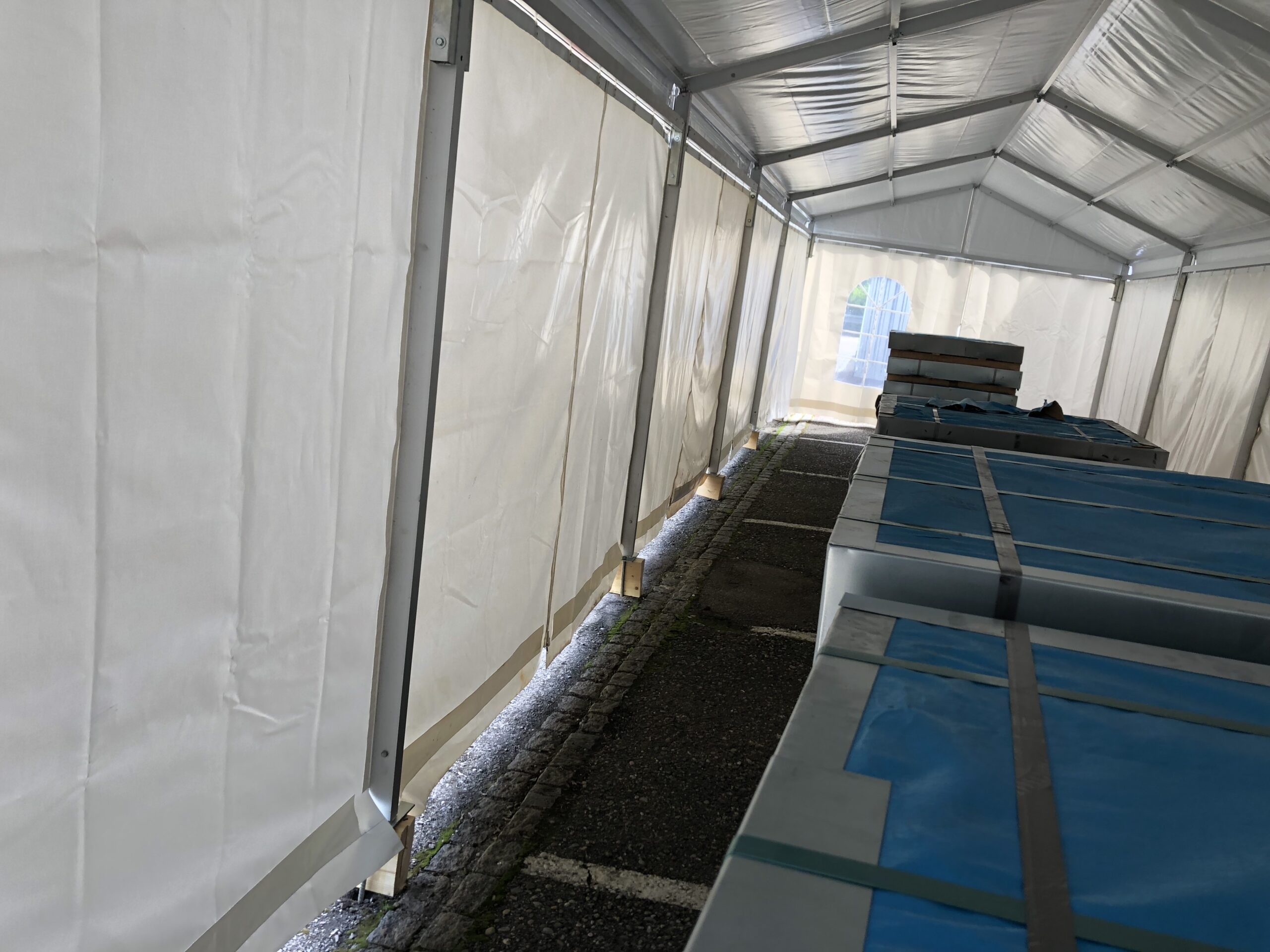 5 x 5 m, weiss, Seitenhöhe verstellbar, mit oder ohne Seitenblachen